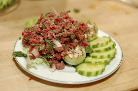 Laab Diip Raw Beef Salad Recipe Lao Food At Saeng S Kitchen