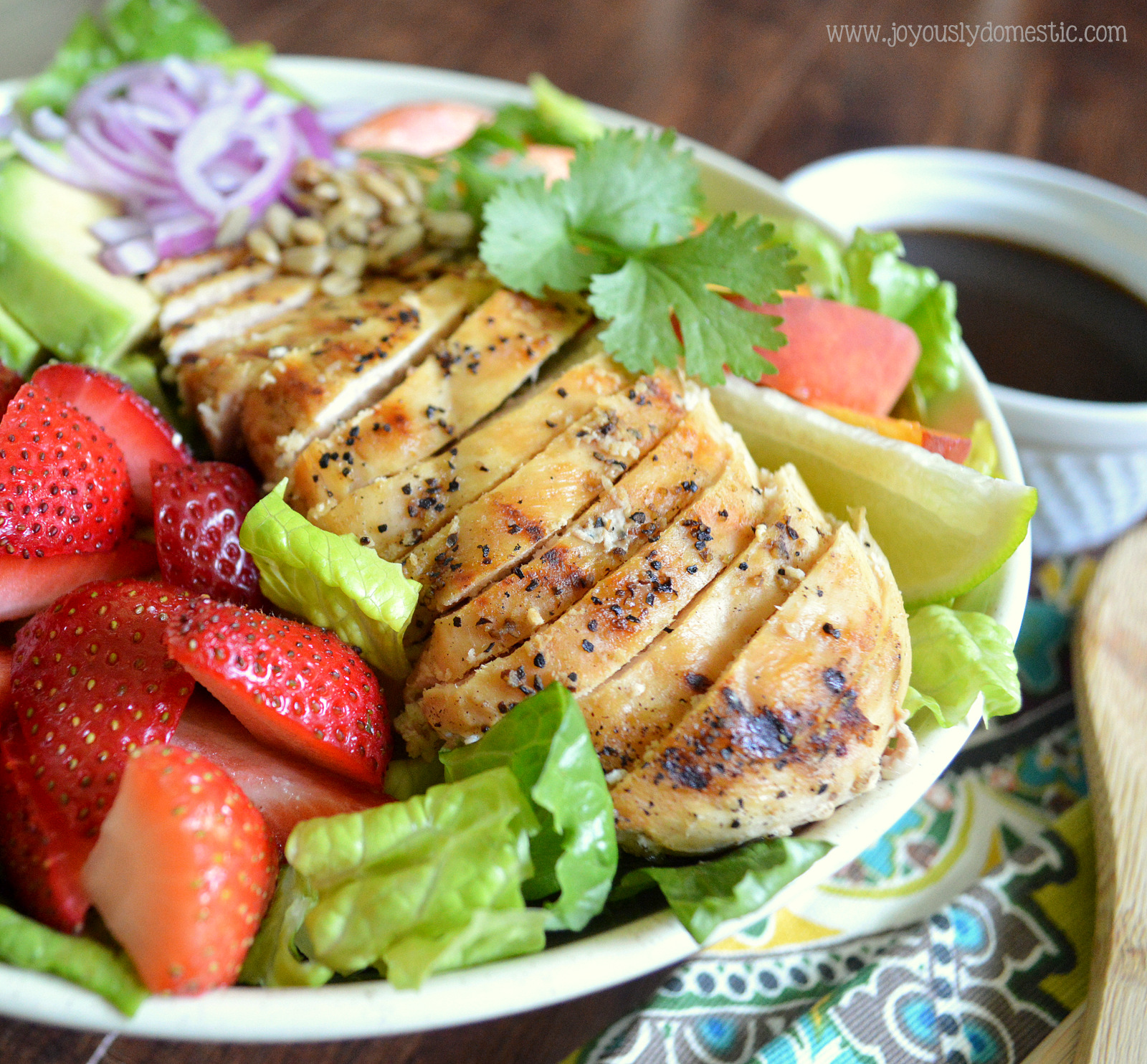 Joyously Domestic Berry Peachy Keen Grilled Chicken Salad Bowl