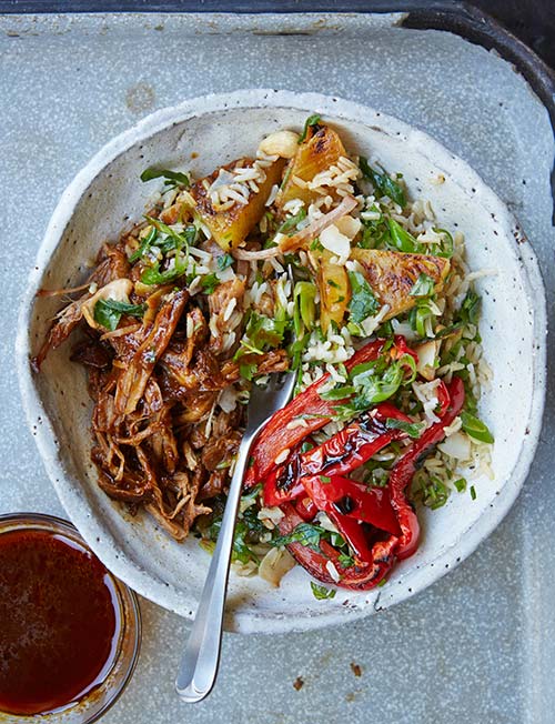 Pineapple And Cashew Rice Salad With Hula Pork And Roast Peppers