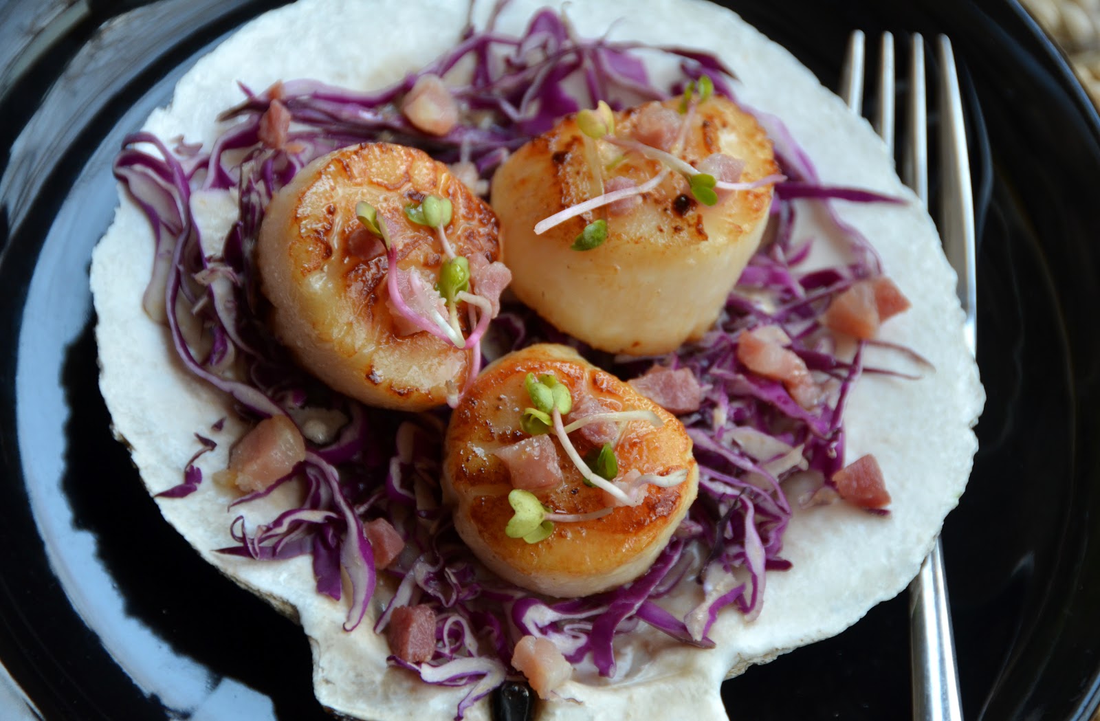 Using a slotted spoon remove the scallops to a strainer and drain. Assemble and divide the salad ingredients on four dinner plates. Its a touch buttery colorful healthy and beyond delicious. Set aside while you prepare the scallops.