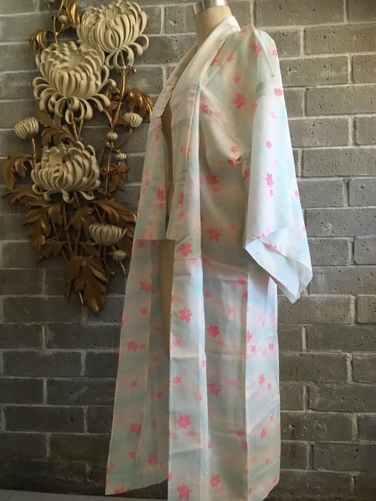 1960s White Kimono Leaf Print Kimono Vintage Cotton Kimono