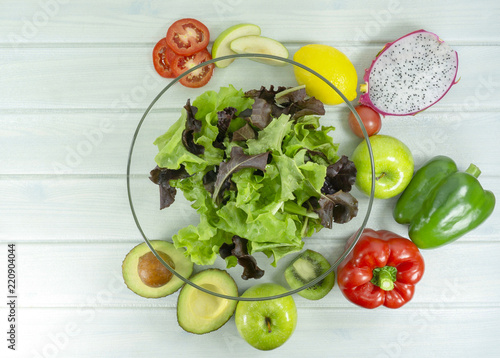 Healthy Salad Plate With Green Apple Tomatoes Avocado Red