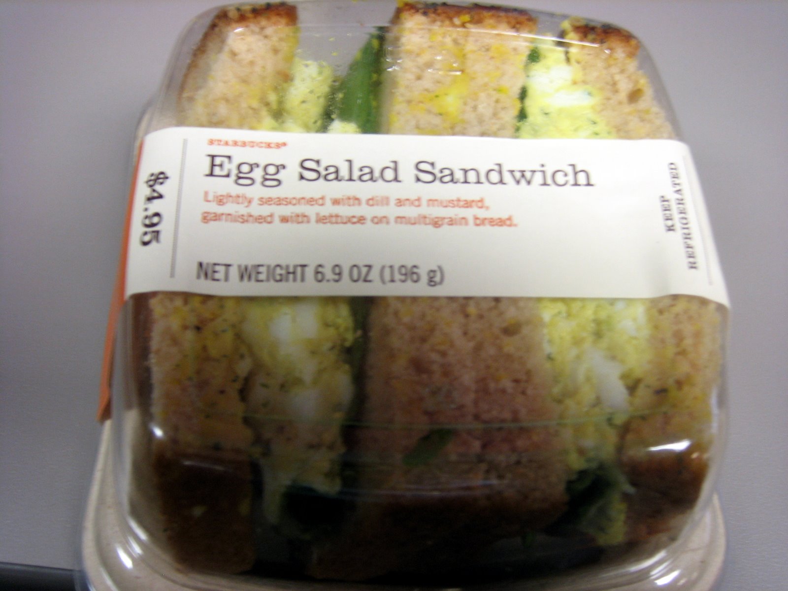 There is just no reason an egg salad sandwich should cost 7 bucks. There are 480 calories in a 1 sandwich serving of starbucks egg salad deli sandwich. Most of those calories come from fat 51 and carbohydrates 36. Visit calorieking to see calorie count and nutrient data for all portion sizes.