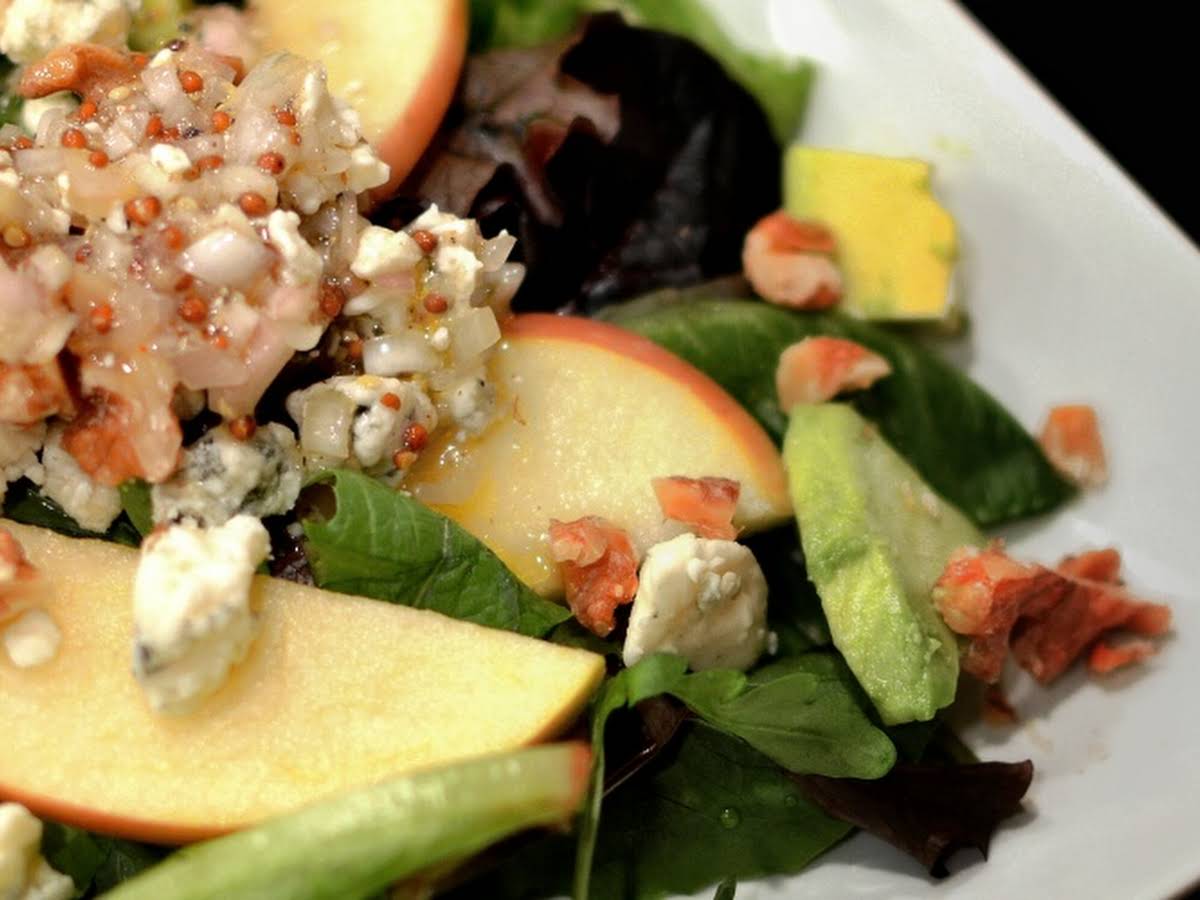 Blue Cheese Pear And Walnut Salad With Warm Bacon Dressing
