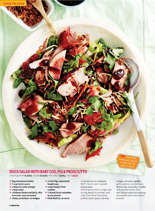 Pressreader Woman S Day Australia 2016 11 07 Duck Salad With Baby Cos Fig Prosciutto