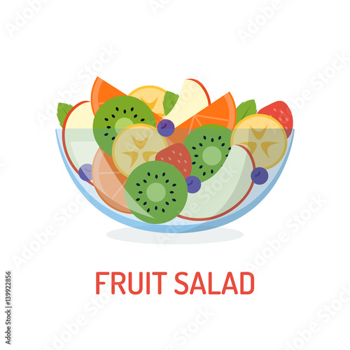 Mixed Fruit Salad In A Glass Bowl Isolated On White Background