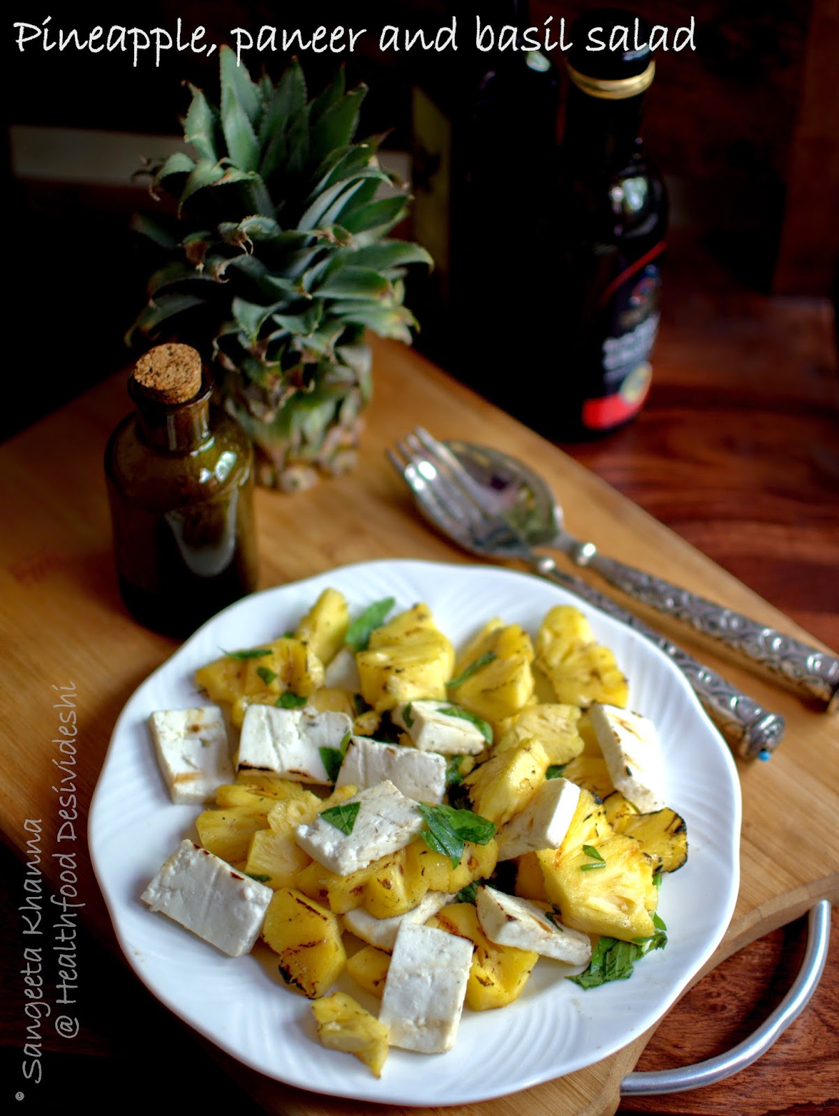 Grilled Pineapple And Paneer Salad With Basil And Pine Nuts