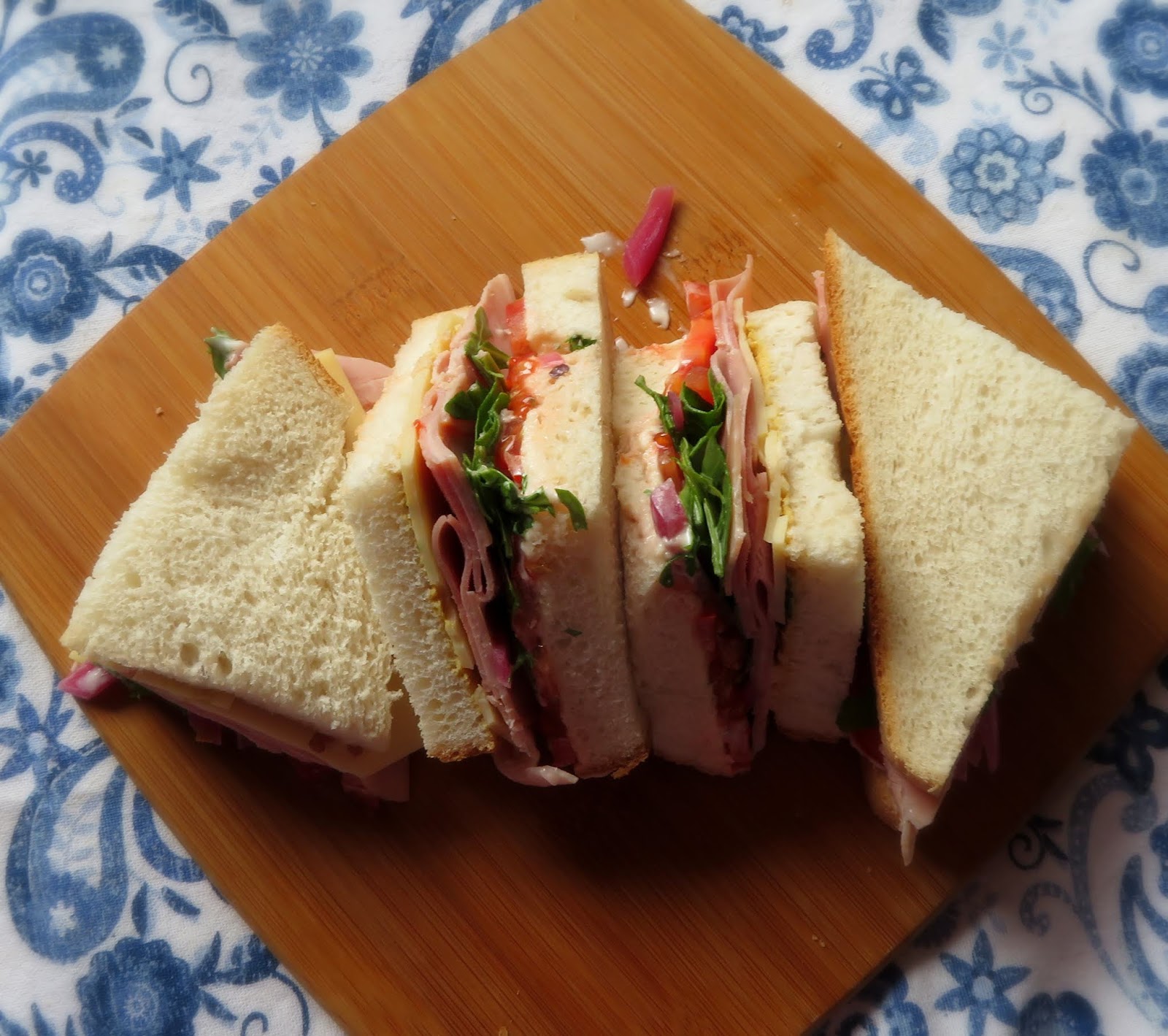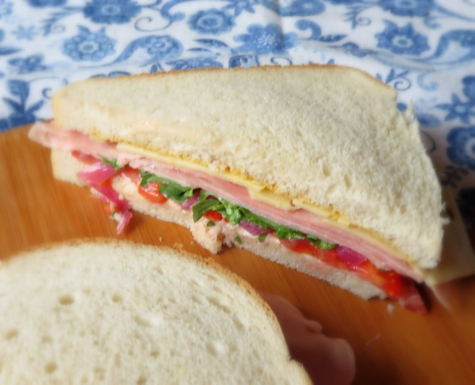 A Ham And Salad Sandwich Cut In Half With Blue In The Background Stock Photo Download Image Now Istock