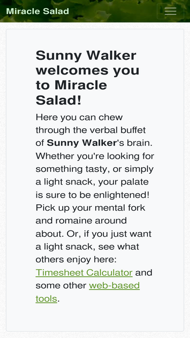 Miraclesalad Com Website Sunny Walker Welcomes You To Miracle Salad