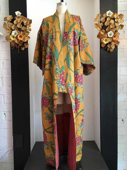 1960s Kimono Vintage Kimono Mustard Yellow Kimono Asian Robe