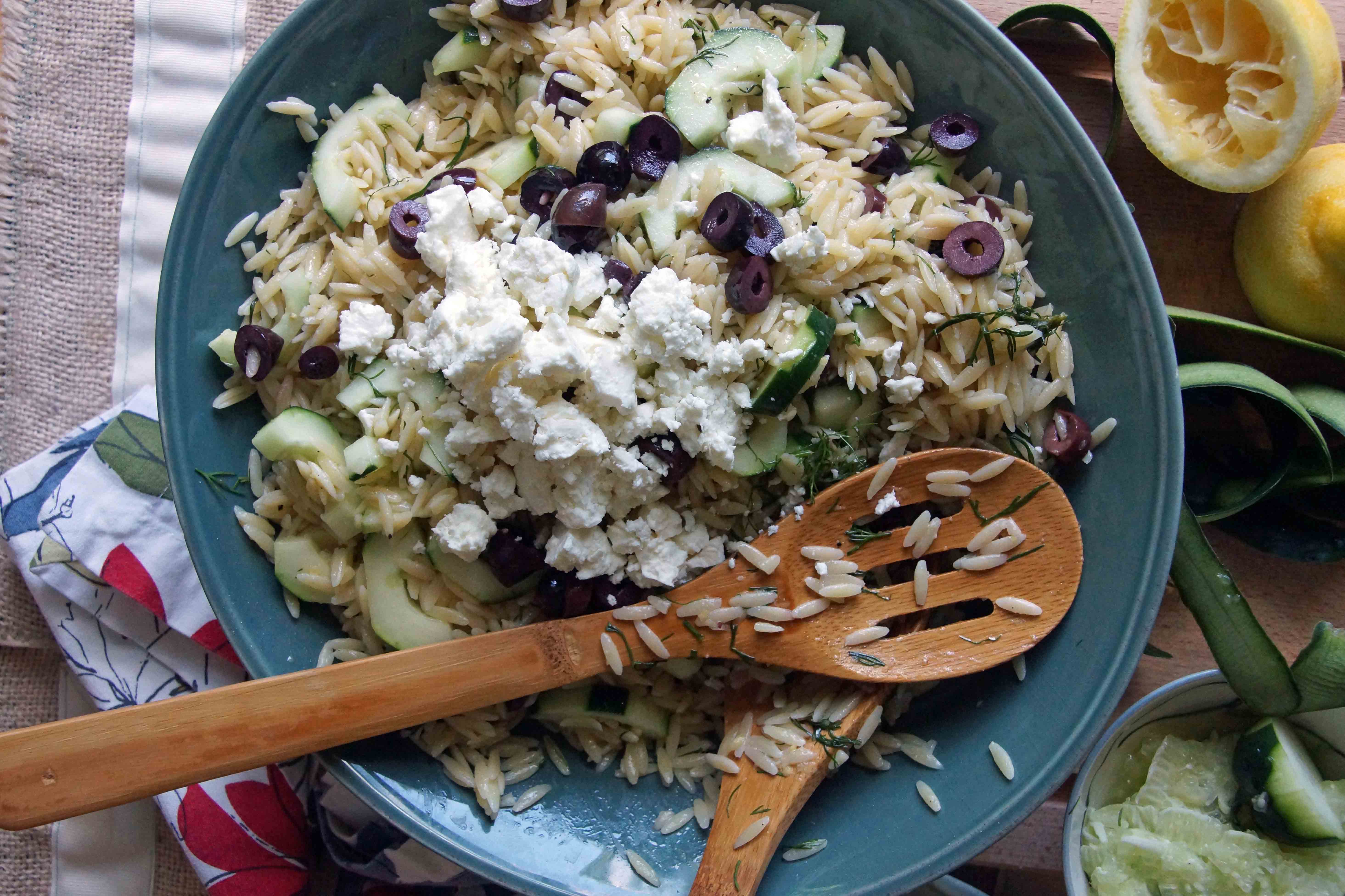 Lemon Dill Orzo Pasta Salad With Cucumbers Olives Feta