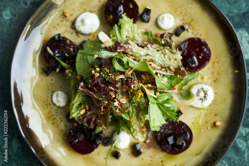 Restaurant Food Salad With Roasted Beetroot Beet Goat Cheese