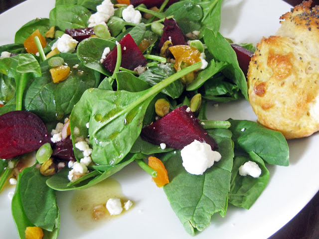 Roasted Beets Baby Spinach Goat Cheese Pistachios Avocado Beet