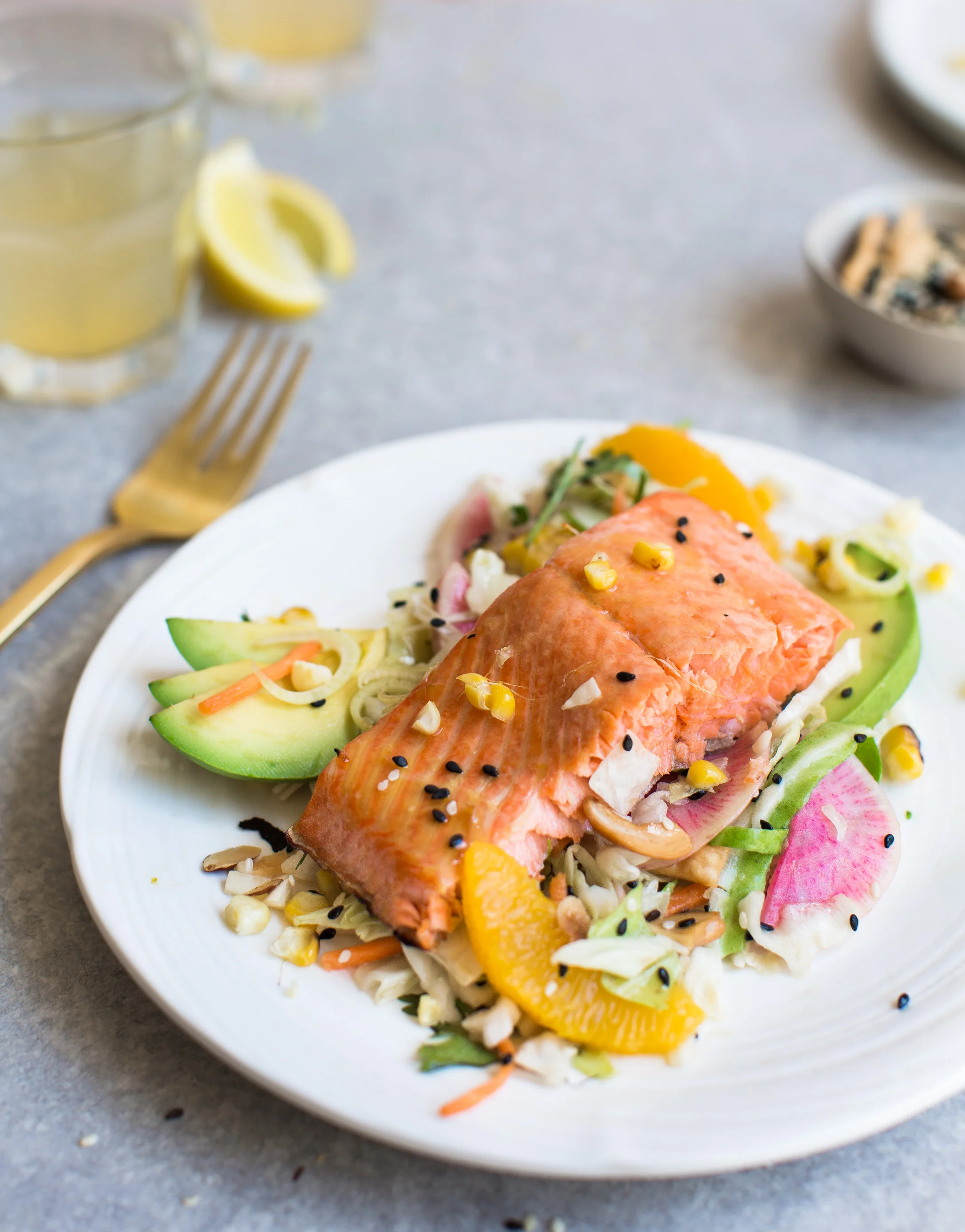 Loaded Sesame Ginger Salmon Salad What S Gaby Cooking