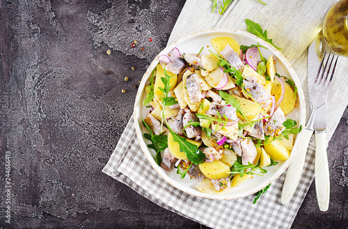 Traditional Salad Of Salted Herring Fillet Fresh Apples Red Onion And