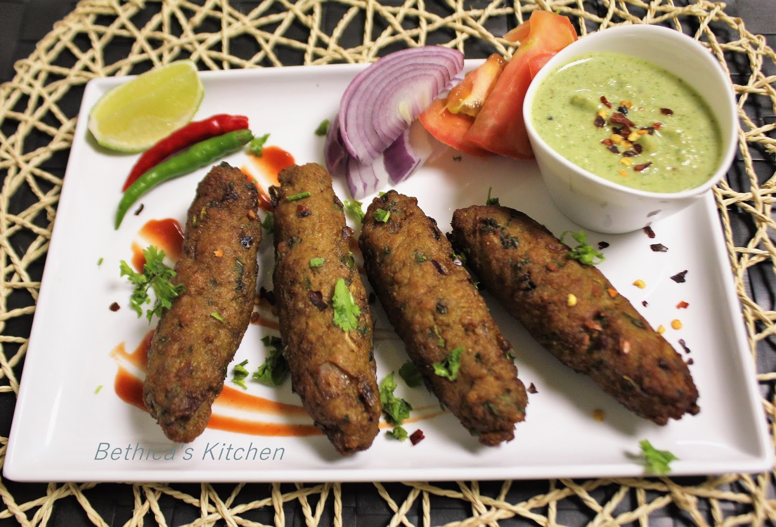 Vegetarian Seekh Kebab Served With Mint Coriander Chili Chutney