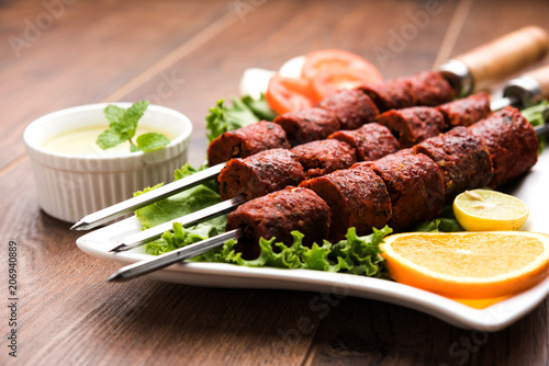 Image Of Mutton Seekh Kabab Served With Green Salad Selective