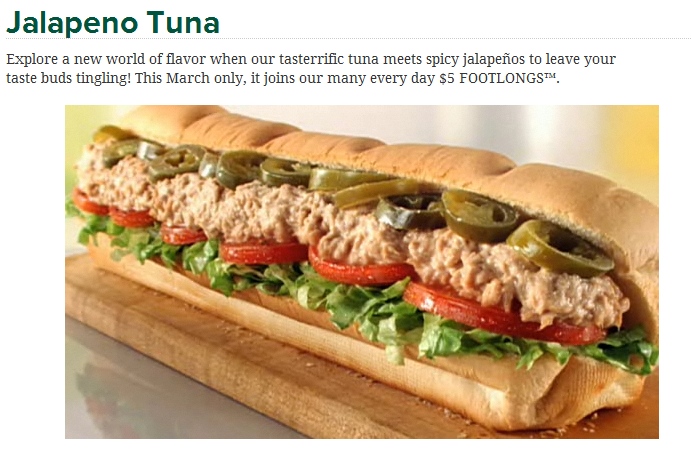 Subway S March Lineup 5 Jalapeno Tuna And The Italian Collection