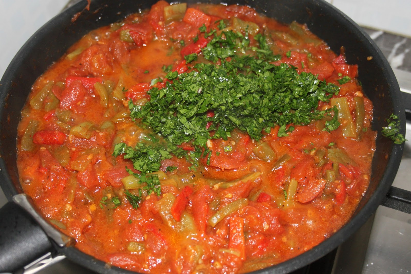 Tomate Et Poivron Vert A La Marocaine Taktouka A L Huile D Olive