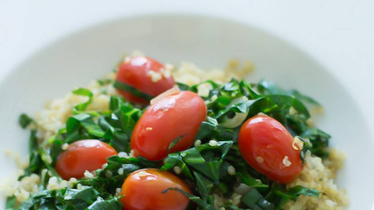 Peach Tomato And Fried Farro Salad With Burrata Recipe Ann