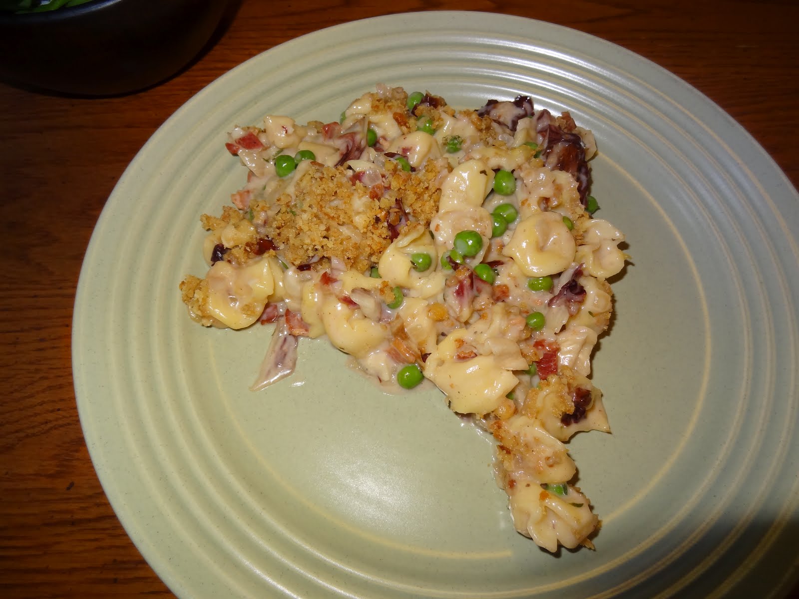 A Papa S Whimsy Creamy Baked Tortellini With Radicchio Peas And