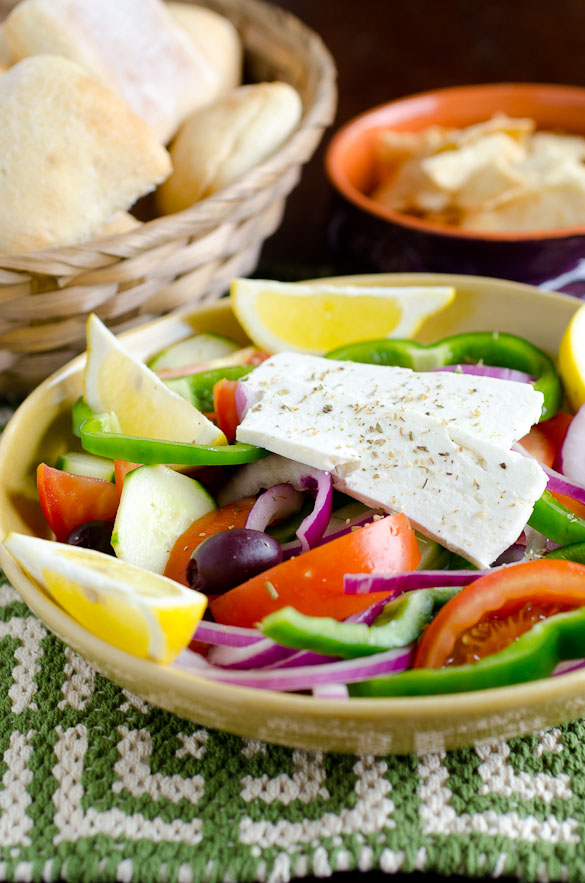 Small 559 large 929 vegans. Greek salad vr gfr. We toss artisan greens in our homemade vinaigrette with kalamata olives tomato cucumber red onion feta cheese and pepperoncinis. I rarely make this grilled greek lamb kebabs recipe but it is definitely worth trying.